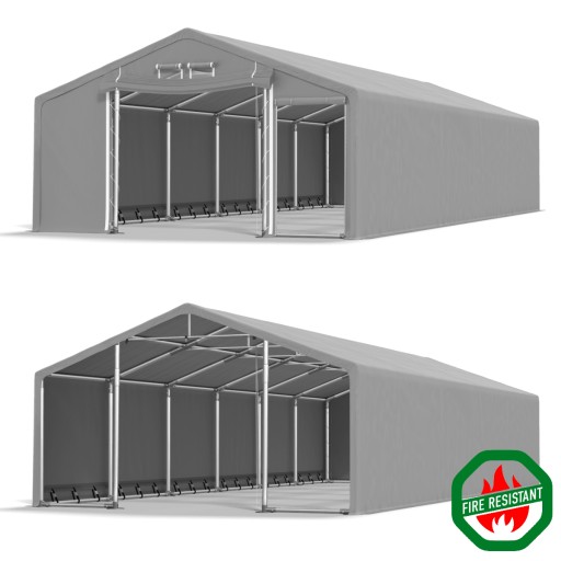 Dwie bramy umieszczone są na przestrzał, po obu stronach namiotu. System Pull Up umożliwia rolowanie bramy za pomocą linki . Dzięki temu zastosowaniu uzyskaliśmy wyższy wjazd niż ściana boczna oraz najpraktyczniejszy system otwierania, do którego wystarczy JEDNA OSOBA.