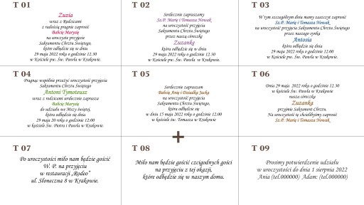 - TEKST zaproszenia np. T01 /te podane są tylko przykładowe/: