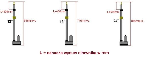 W tej aukcji kupujemy zestaw 18 cali. Natomiast ogólnie długość siłowników dobiera się do szerokości, wagi bramy np. :