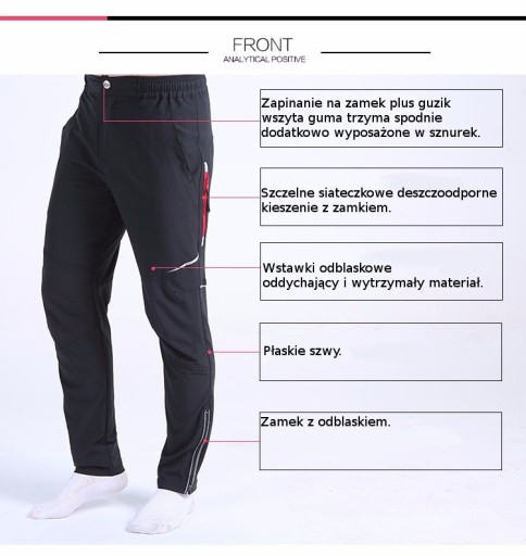 Na bokach i z tyłu spodnie mają paski odblaskowe, które są widoczne w ciemności;