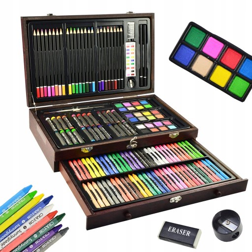 Profesjonalny Zestaw Artystyczny 145 el w Drewnianej Walizce