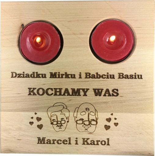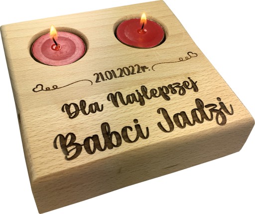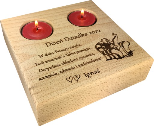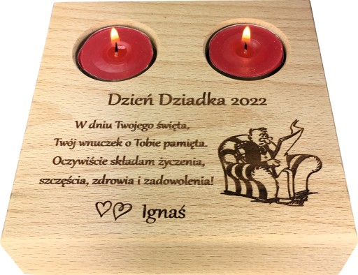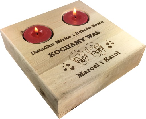 GRAWEROWANY DREWNIANY ŚWIECZNIK - UPOMINEK Z OKAZJI DNIA BABCI I DNIA DZIADKA