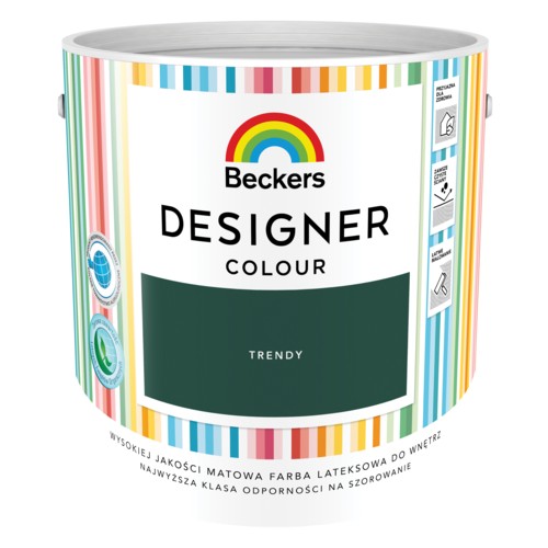 Beckers Designer jest wodorozcieńczalną farbą lateksową wysokiej jakości do malowania ścian i sufitów. Wyróżnia się dobrym kryciem i trwałością koloru. Powierzchnia pokryta farbą ma piękne matowe wykończenie. Powłoka farby jest trwała i odporna mycie wodą z dodatkiem detergentu. Nie chlapie i nie wydziela zapachu podczas malowania. Produkt rekomendowany przez Polskie Towarzystwo Alergologiczne