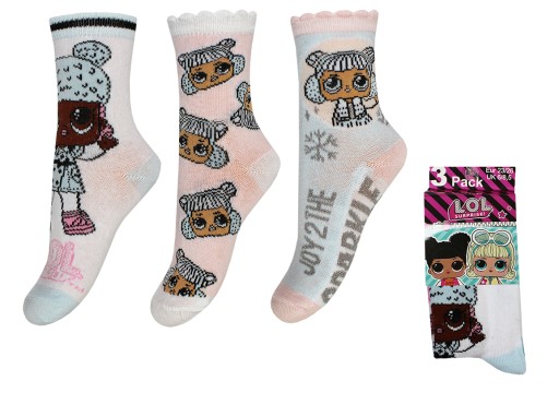TRÓJPAK (3 PARY) SKARPETEK DZIEWCZĘCYCH LOL SURPRISE W ROZMIARZE 23/26 - (HU0611)
