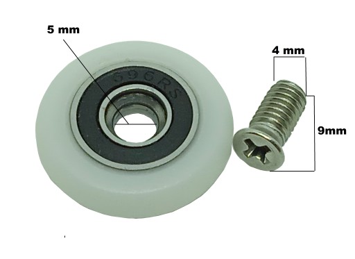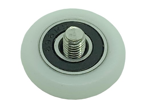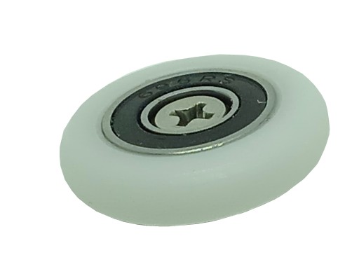 Kółko łożyskowane do kabiny prysznicowej o średnicy 25 mm - w zestawie śrubka mocująca. Kółko z tworzywa sztucznego, łożysko kulkowe 696RS. Szczegółowe wymiary kółka na zdjęciach.