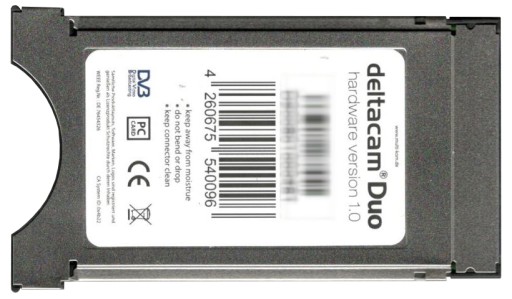 DeltaCAM DUO REV 2.0 Deltacrypt CI to wielosystemowy moduł CAM kompatybilny z wieloma systemami szyfrowania, w tym Viaccess, Conax, Irdeto, Cryptoworks, MediaGuard (Seca / Aston), Nagravision i BISS. Jest kompatybilny z operatorami wielu platform takimi jak Canal Digitaal NL, TV Vlaanderen, ORF, HD+, Telesat, DigiTurk, tivusat.