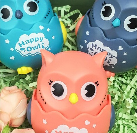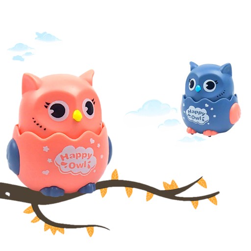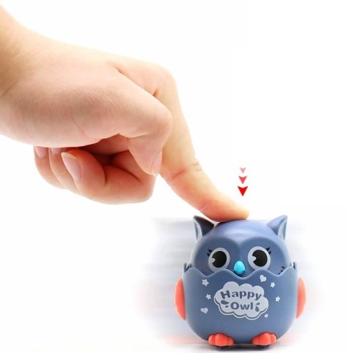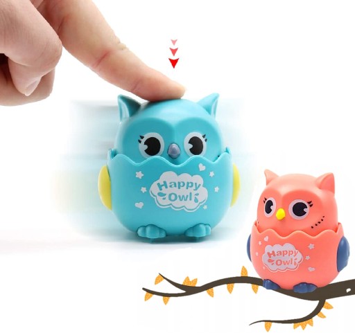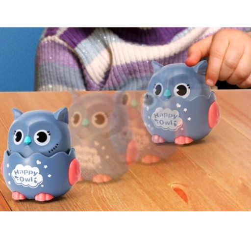 - Sówka posiada kółeczka, wystarczy nacisnąć jej główkę, a zabawka pojedzie