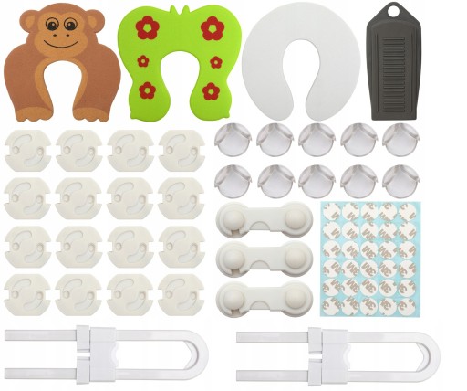 Zestaw zabezpieczeń dla dziecka-niemowlęcia składający się z 35 elementów.