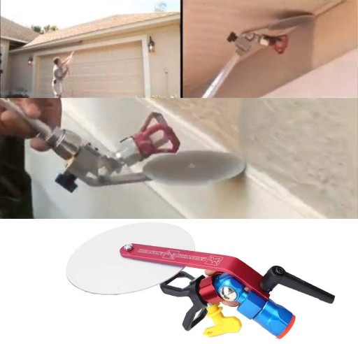 Bardzo przydatny zestaw przyrządów, które połączone znacznie ułatwią i przyspieszą malowanie krawędzi przy pomocy bezpowietrznych urządzeń natryskowych.