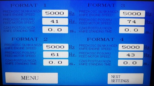 Prędkość biegu w zależności od długości formatki - nóż obrotowy - cięcie bez zatrzymywania