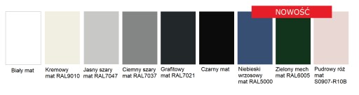- Pozostałe kolory wg palety RAL i NCS za 5 % dopłatą.
