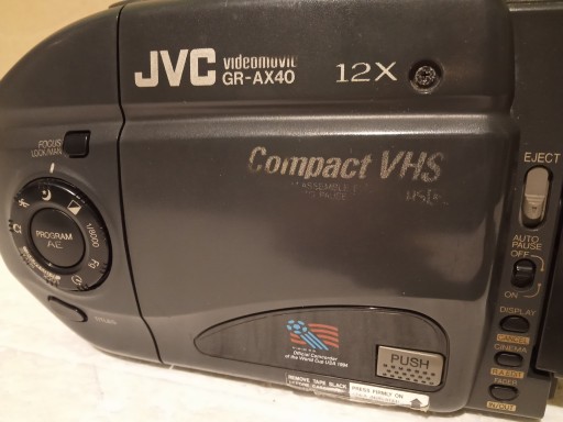 Kamera : JVC GR-AX40EG . W komplecie bateria . Nie sprawdzana -może wymagać przeglądu !.