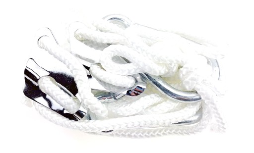 - w zestawie: 2 stabilne linki o długość ok. 3 m oraz 2 ciężkie, stalowe haczyki / karabińczyki o długości 14 cm z mocowaniem,