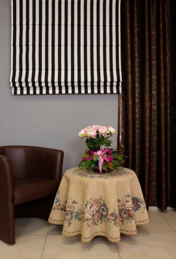 - dekoracyjna roleta rzymska z mechanizmem łańcuszkowych, możliwość ustawiania różnych wysokości