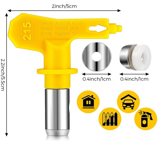 Pierwsza cyfra, to szerokość strumienia dyszy. Mnożąc pierwsza cyfrę x 5cm otrzymamy przybliżoną szerokość strumienia w przypadku trzymania pistoletu 30 cm od powierzchni, zatem: 5 x 5cm = 25 cm szerokość natrysku