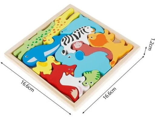 KLOCKI ZWIERZĄTKA DREWNIANE PUZZLE UKŁADANKA ZOO