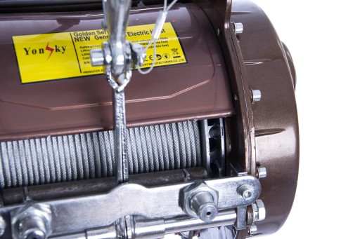 Elektryczna wciągarka linowa marki MAGNUM. Urządzenie wyposażone jest czujniki krańcowe zabezpieczające wciągarkę przed nadmiernym rozwinięciem liny i nawinięciem jej w złym kierunku oraz wciągnięciem ładunku w bęben. Niewątpliwą zaletą wciągarki jest bęben dużej średnicy z dociskiem zapewniającym równomierne układanie liny. Nad bezpieczeństwem pracy czuwa zblocze z zabezpieczeniem oraz hamulec elektromagnetyczny. Ergonomiczny pilot dobrze leży w dłoni. Wciągarka posiada pałąk umożliwiający szybki montaż urządzenia.