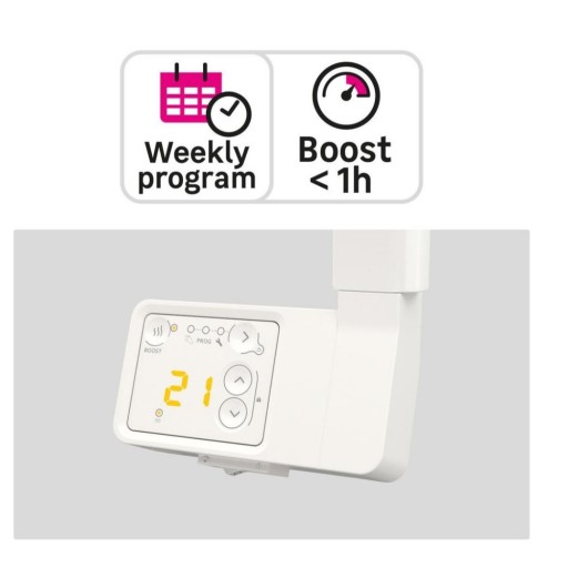 Urządzenie wystarczy włączyć, gdy chcesz ogrzać łazienkę lub wysuszyć ręczniki. Pamięć ustawień pozwala nie resetować urządzenia w przypadku awarii zasilania. Dla bezpieczeństwa grzejnik elektryczny został wyposażony w automatyczny odpowietrznik