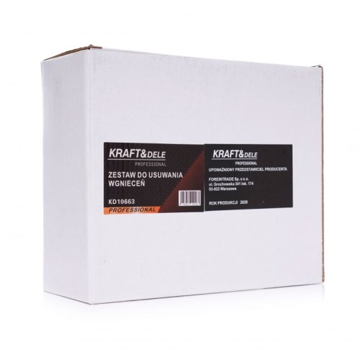 Urządzenie do usuwania wgnieceń karoserii samochodowej marki Kraft&Dele model KD10663. Zestaw niezbędny w każdym garażu! Oferuje możliwość łatwego i skutecznego usuwania wgniotek.