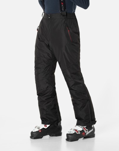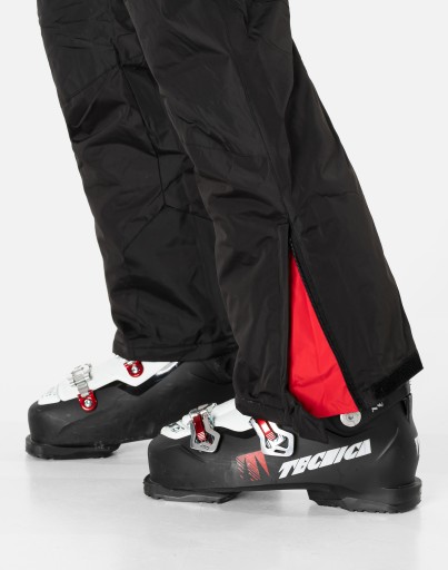 Spodnie zapinane są na metalowe napy, haftkę oraz zamek błyskawiczny. Posiadają elastyczne szelki z możliwością ich regulacji. Po bokach dwie klasyczne wpuszczanie kieszenie na dłonie, zasuwane na wodoodporne zamki błyskawiczne. Dopasowanie w pasie zapewnia wszyty w spodnie szeroki elastyczny pas ściągający. Krój z prostymi nogawkami pozwalający dodatkowo założyć pod spód getry narciarskie. Na dole spodni zamki do regulacji szerokości i dopasowania z dodatkowym zapięciem na rzepy. Wewnątrz nogawek śniego-wiatrołapy z taśmą ściągającą, zabezpieczają przed utratą ciepła i zapobiegają dostawaniu się zimna, wilgoci, śniegu, wody od spodu spodni. Specjalne przeszycia w spodniach uwzględniające anatomiczny kształt kolan gwarantują pełną swobodę ruchów dla narciarzy i snowboardzistów.