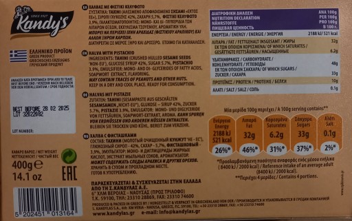 Chałwa Pistacjowa Grecka Kandylas 400g Oryginalna przekąska, słodycz