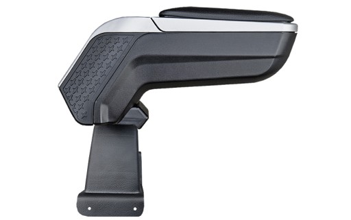 Podłokietnik jest wykonany z tworzywa ABS wysokiej jakości. Oparcie wysuwa się do przodu w pozycji poziomej ok. 5 cm. Podłokietnik posiada na końcu wnękę na przedmioty oraz dodatkowo praktyczny otwierany schowek, wykończony czarnym, miękkim flokiem. W schowku tym znajdują się min. uchwyty na długopisy oraz specjalne miejsce na monety. Cały podłokietnik można odchylić do pionu (podnieść do góry).
