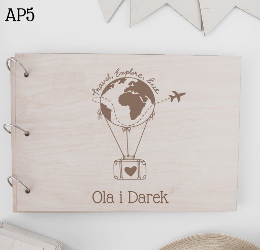 Nasz album wykonany jest z drewnianej okładki, na którą nanosimy personalizowany, wysokiej jakości grawer. Wnętrze albumu podróżnika wykonane jest z 30 grubych kart (250g/m2) czyli 60 białych lub czarnych stron.