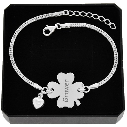Браслет серебряного клевера с гравировкой для подарочной 925