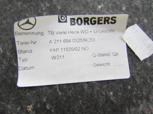 1 ОБИВКА БАГАЖНИКА MERCEDES W211 СЕДАН
