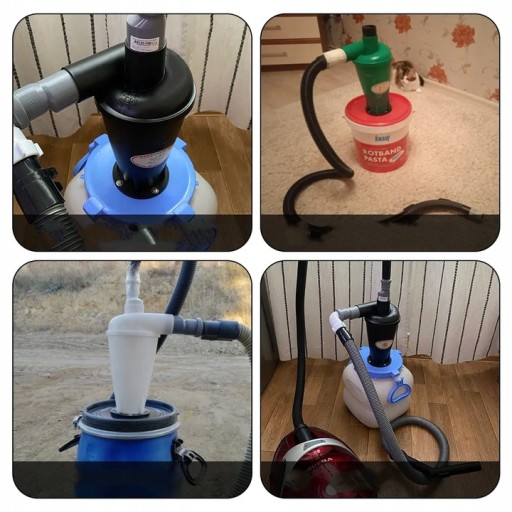 - Cyklon do usuwanie pyłu, który ma trafić do odkurzacza