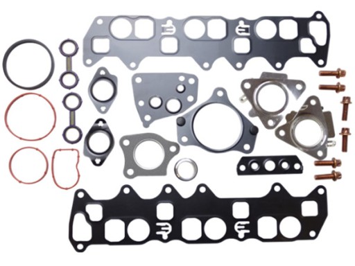 - Uszczelki ("trójkątne") oraz śruby między kolektorem wydechowym a turbosprężarką