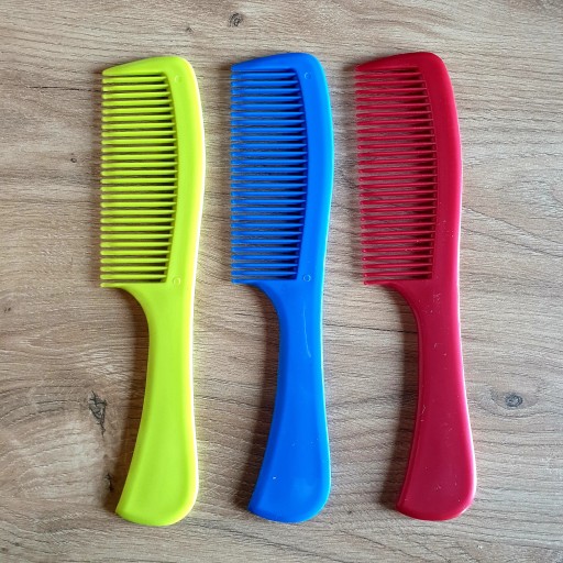 Grzebień wykonany jest z wysokiej jakości tworzywa i zaopatrzony w wygodną ergonomiczną rączkę.