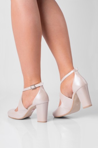 Свадебные босоножки на устойчивом каблуке, кожа бежевого цвета 39