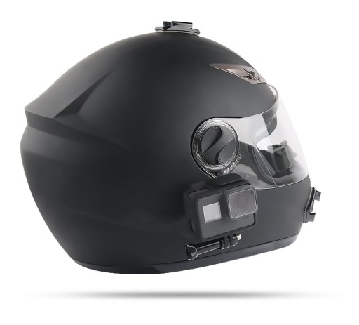 - Przeznaczony do kasków motocyklowych, można go zainstalować w pozycji podbródka na regulowanym uchwycie. Jest bezpieczny i nie blokuje wzroku.