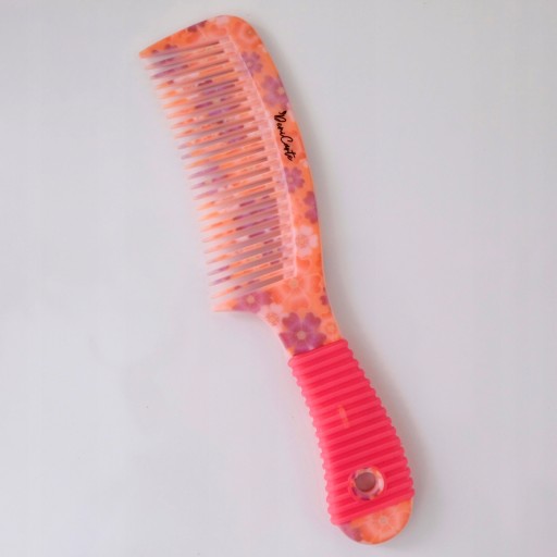 Grzebień wykonany jest z wysokiej jakości tworzywa z kolorowym fantazyjnym wykończeniem. Zaopatrzony w wygodną ergonomiczną rączkę z tworzywa ABS umożliwiającą wygodny i pewny chwyt.