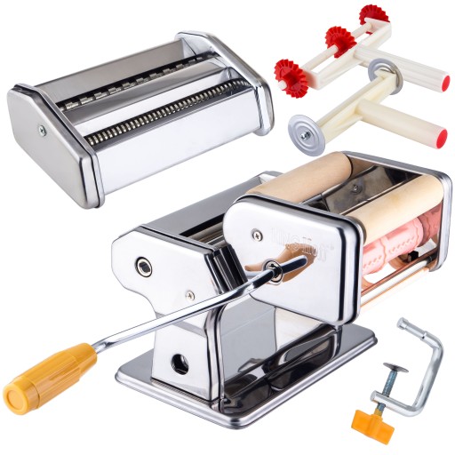 Maszynka pozwala w łatwy i szybki sposób przygotować domowy makaron, pierożki ravioli, jak również rozwałkować ciasto na odpowiednią grubość. Stabilna szeroka podstawa zaopatrzona została w gumowe nóżki antypoślizgowe. Pozwala na przygotowanie domowego makaronu o dwóch szerokościach: nitkę 1,6 mm i tasiemkę 6,6 mm.