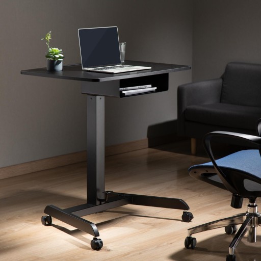Uniwersalne biurko z pedałem do regulacji wysokości. Stół jest nie tylko praktyczny, ale także zajmuje mało miejsca – dobre rozwiązanie dla większej swobody w miejscu pracy.