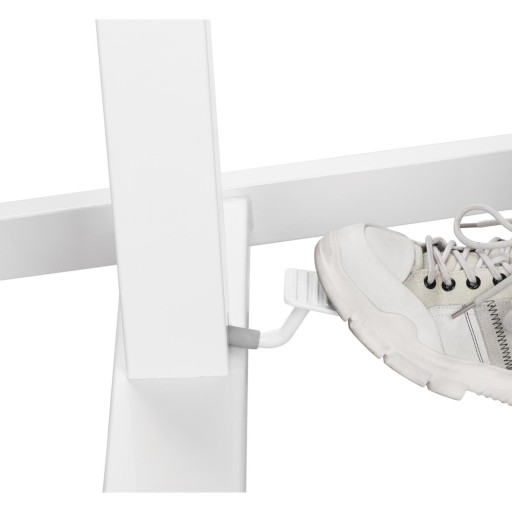 Uniwersalne biurko z pedałem do regulacji wysokości. Stół jest nie tylko praktyczny, ale także zajmuje mało miejsca – dobre rozwiązanie dla większej swobody w miejscu pracy.