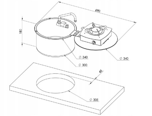 Kod LC1701 Ilość palników 1 Moc SR 1,9 kW Zasilanie LPG 28-30 mbar Pobór gazu (SR 127g/h) Zabezpieczenie Termopara Zapalarka Brak Materiał Aisi304 Stainless Steel Wykończenie Błyszczące Wymiar zewnętrzny Ø 340mm - 690mm Wymiar montażowy Ø 305mm El. montażowe Brak Waga 6 kg Gwarancja 2 lata