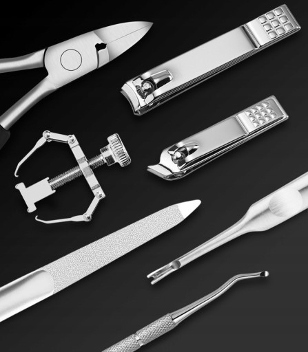 Idealny zestaw narzędzi do wrastających paznokci lub regularnej pielęgnacji stóp.