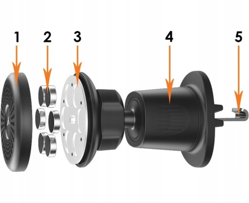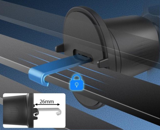 Specjalnie zaprojektowany haczyk, który spełnia rolę kotwicy blokując uchwyt o kratkę nawiewu.