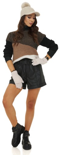 Model połowicznie zakrywa uszy. Posiada duży puszysty pompom.