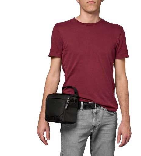 Torba naramienna S kolekcji Advanced III została zaprojektowana na aparat z dodatkowym obiektywem.