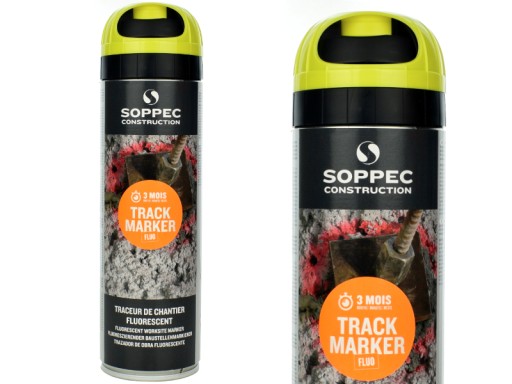 Track Marker firmy Soppec to farba fluorescencyjna w aerozolu przeznaczona do wykonywania oznaczeń na placach budowy oraz do znakowania przy pracach geodezyjnych i pomiarowych. Z jej pomocą wykonamy widoczne, odblaskowe oznaczenia, podkreślając niebezpieczne strefy, zaznaczając pole pod wykop lub znacząc dokonane pomiary. Dzięki farbie Track Marker niewielkim kosztem, znacznie zwiększymy bezpieczeństwo na budowie i usprawnimy pracę. Aerozol stosowany jest w sytuacjach gdy długotrwałe oznaczenia nie są pożądane, utrzymując się na znaczonym obszarze do 3 miesięcy.