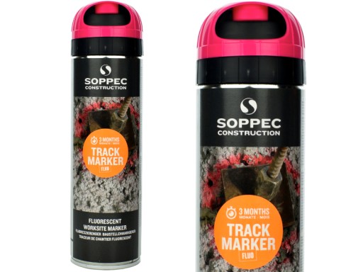 Track Marker firmy Soppec to farba fluorescencyjna w aerozolu przeznaczona do wykonywania oznaczeń na placach budowy oraz do znakowania przy pracach geodezyjnych i pomiarowych. Z jej pomocą wykonamy widoczne, odblaskowe oznaczenia, podkreślając niebezpieczne strefy, zaznaczając pole pod wykop lub znacząc dokonane pomiary. Dzięki farbie Track Marker niewielkim kosztem, znacznie zwiększymy bezpieczeństwo na budowie i usprawnimy pracę. Aerozol stosowany jest w sytuacjach gdy długotrwałe oznaczenia nie są pożądane, utrzymując się na znaczonym obszarze do 3 miesięcy.