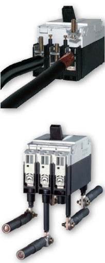 Małe wyłączniki NZM1 do 160 A standardowo są wyposażone w zaciski skrzynkowe, umożliwiające podłączenie kabli oraz taśm miedzianych. Wyłączniki NZM2, 3, 4 w standardzie mają przyłącza śrubowe, poprzez które można podłączyć szyny oraz kable z końcówką oczkową. Różne dodatkowe przyłącza mogą być stosowane dla wszystkich wyłączników zarówno w wersji stacjonarnej jak i wysuwnej. Tunelowe zaciski łączeniowe są uniwersalne dla podłączenia kabli miedzianych i aluminiowych. Stosując dodatkowe osłony na styki i końcówki kablowe można uzyskać stopień ochrony do IP2X. W ten prosty sposób od strony zasilania uzyskuje się ochronę przed bezpośrednim dotykiem.