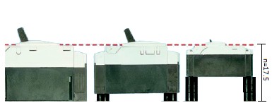 Wszystkie wyłączniki są zaprojektowane tak, że ich głębokość jest wielokrotnością 17,5 mm, dotyczy to także akcesoriów montowanych od frontu. Dzięki zastosowaniu tanich i łatwych w użyciu elementów dystansowych można, bez stosowania kosztownych i wykonywanych na zamówienie elementów, wyrównać fronty wyłączników. Niezależnie od zastosowanego typu wyłącznika, wyposażenia w napęd dźwigniowy czy obrotowy, zawsze w efekcie wyłączniki są na jednej głębokości. Oszczędzamy czas, bo nie ma konieczności stosowania indywidualnie wykonywanych elementów dystansowych.