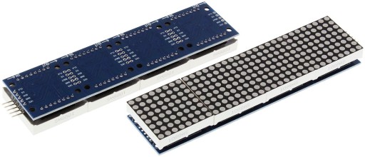Moduł matrycy LED o rozdzielczości 8x32 pól, zbudowany z 4 modułów 8x8 LED sterowanych za pomocą układu MAX7219. Komunikacja z matrycą odbywa się za pośrednictwem magistrali SPI. Moduł współpracuje z Arduino i mikrokontrolermi AVR. Martyce można łączyć szeregowo w większe moduły.