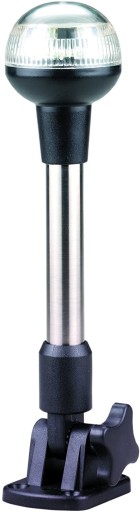 Lampa nawigacyjna topowa 360 st. (światło: białe) na stalowym maszcie o regulowanym pochyleniu, w wodoodpornej obudowie z twardego plastiku ABS. Przeznaczona do łodzi o długości do 12 m.