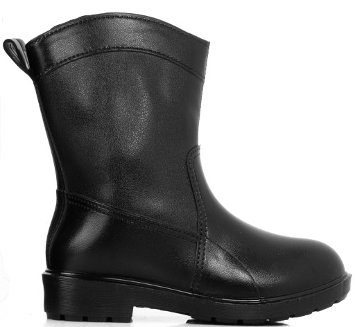 Kalosze wykonane z tworzywa gumowego z błyszczącym wykończeniem.